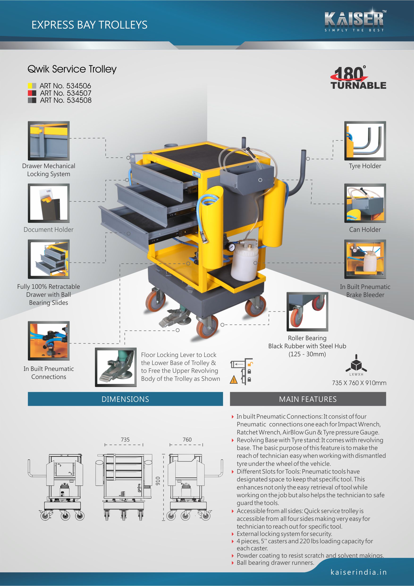Accessible from all sides: Quick service trolley is accessible from all four sides making very easy for technician to reach out for specific tool.