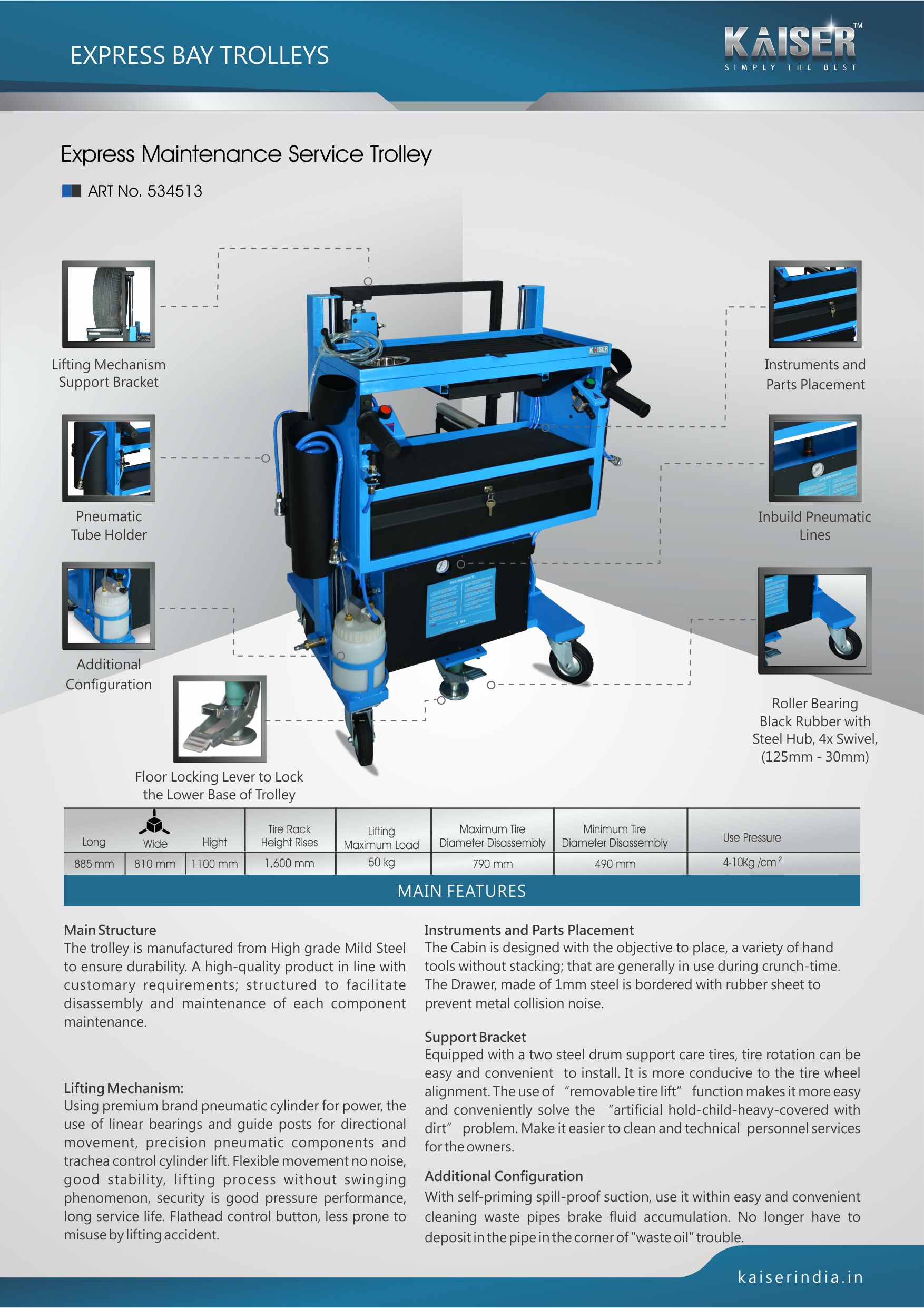 Four heavy duty castors for ease of movement in all areas of the workshop.