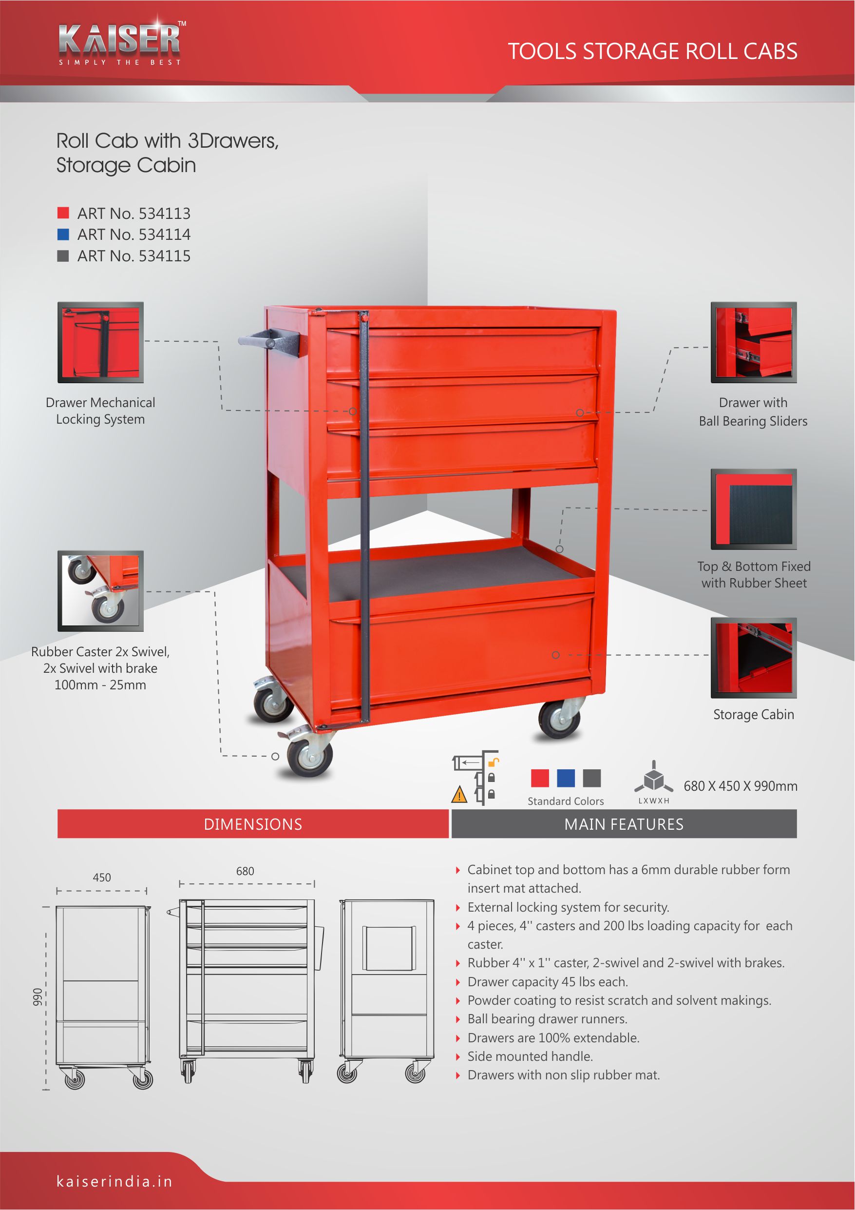 ROLL CAB WITH 3 DRAWERS, STORAGE CABIN