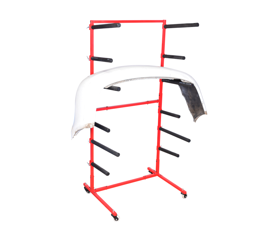 One-sized rack for safe and tidy workshop storage of painted bumpers.