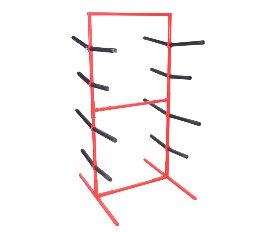 Double-sided rack for safe and tidy workshop storage of painted bumpers.