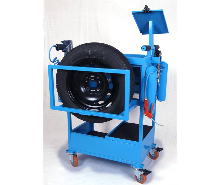 Rubber 4'' x 1'' caster, 2-Fixed, 1-swivel and 1-swivel with total brakes.