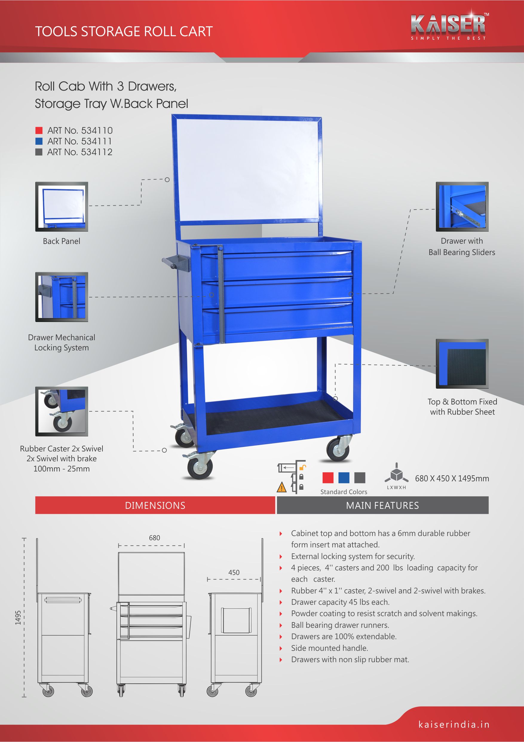 Cabinet top and bottom has a 6mm durable rubber form insert mat attached.