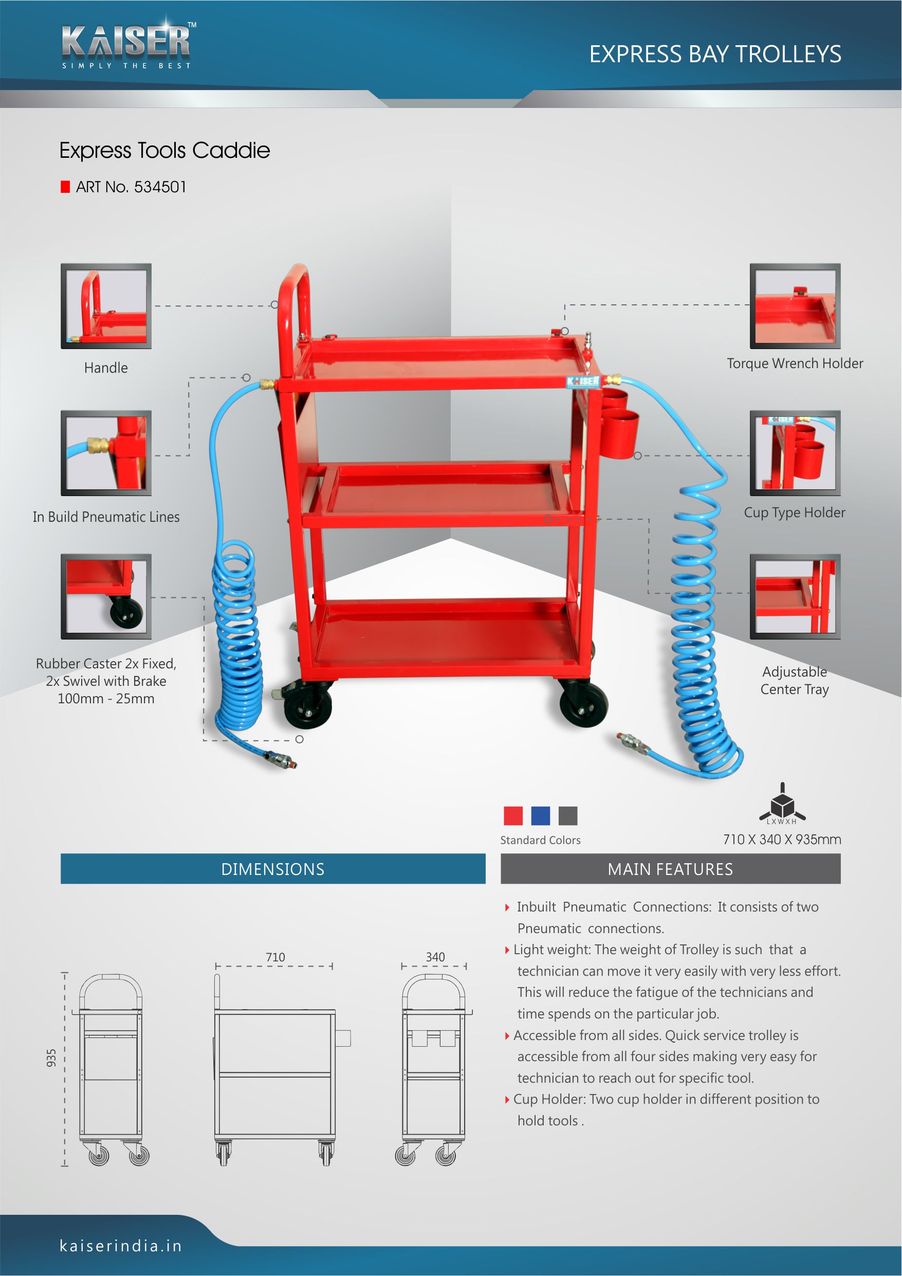 Light weight: The weight of Trolley is such that a technician can move it very easily with very less effort. This will reduce the fatigue of the technicians and time spends on the particular job.